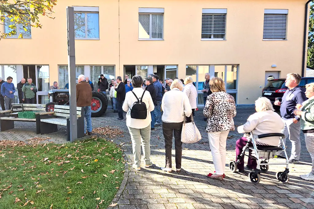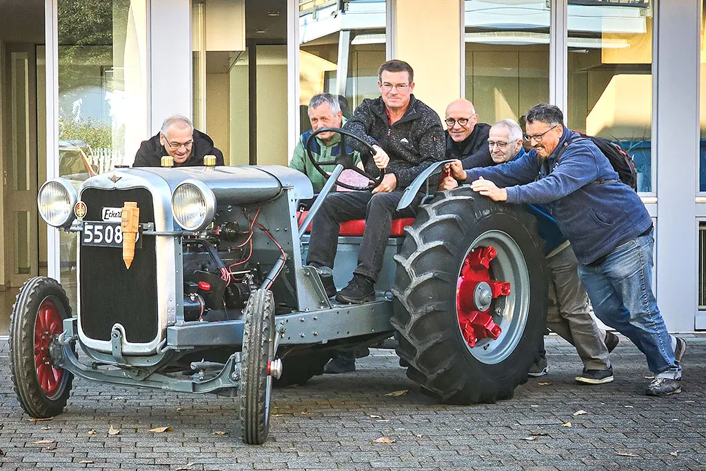 Nach den Vorträgen wurde draussen beim Apéro weitererzählt, gelacht und gestaunt. Besonders über den wunderbar erhaltenen Eckert-Traktor, den Urban Kramer und sein Sohn Reto mitgebracht hatten. Die stolzen Besitzer beantworteten Fragen und teilten Anekdoten aus einer Zeit, in der Technik noch Handwerk war. Bei Speckzopf und Sonnenschein kamen Alt und Jung ins Gespräch. Ganz so, wie wir von der Kulturkommission uns das wünschen: Geschichte und Geschichten, die verbinden.